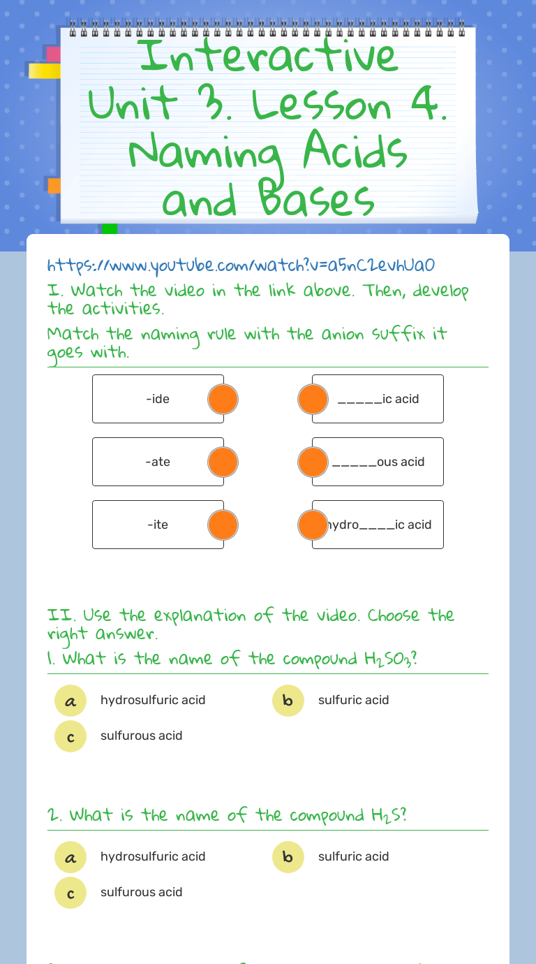 Compounds worksheet part 1a writing ionic formulas answers naming acids worksheet. Unit 3 worksheet 2 physics answer key.